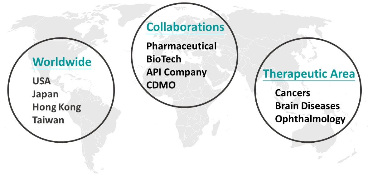 We develop our own new drugs and provide services to external companies including novel chemical entities and approved drugs through the 505B2 pathway. We welcomes strategic and business partners for the co-development of technologies and nano-pharmaceutical products.