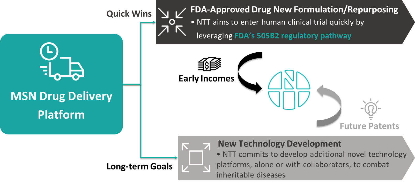 NTT’s proprietary MSN technologies provide a versatile and biocompatible delivery platform designed to overcome major biological barriers and limitations of conventional methods for delivering small molecules, peptides, and nucleic acids, particularly in the fields of brain diseases, ocular and retinal diseases, oncology, and gene therapy.